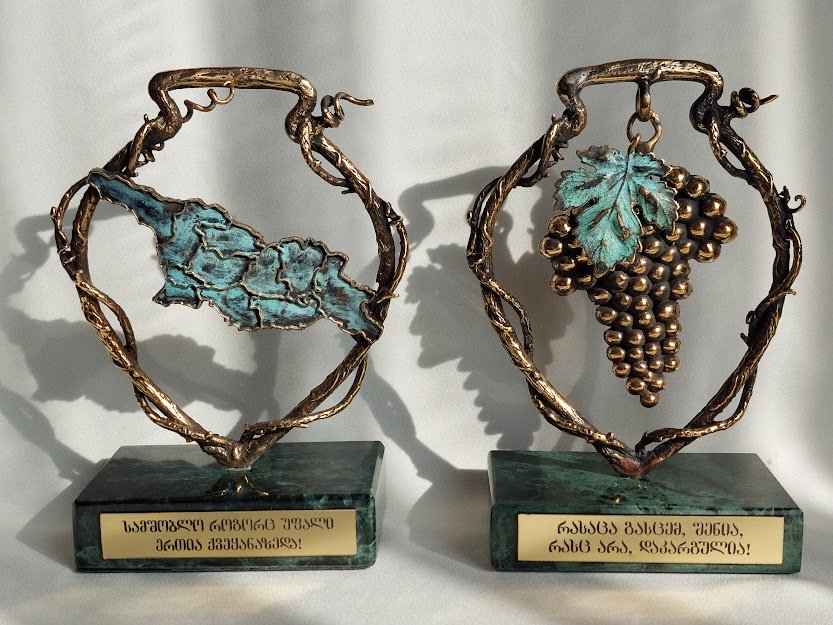 theme of wine and Georgia, made by bronze, marble and natural stones (gemstones). If you want the