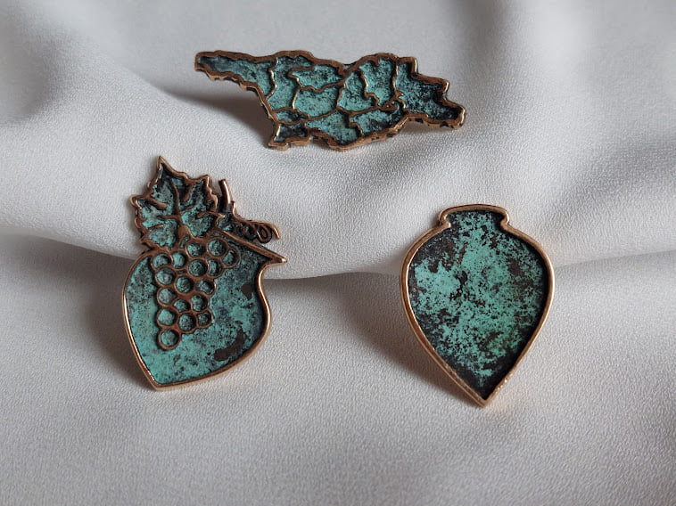 საქართველოს ფორმის ბროში ანტიკური დაძველების ეფექტით.