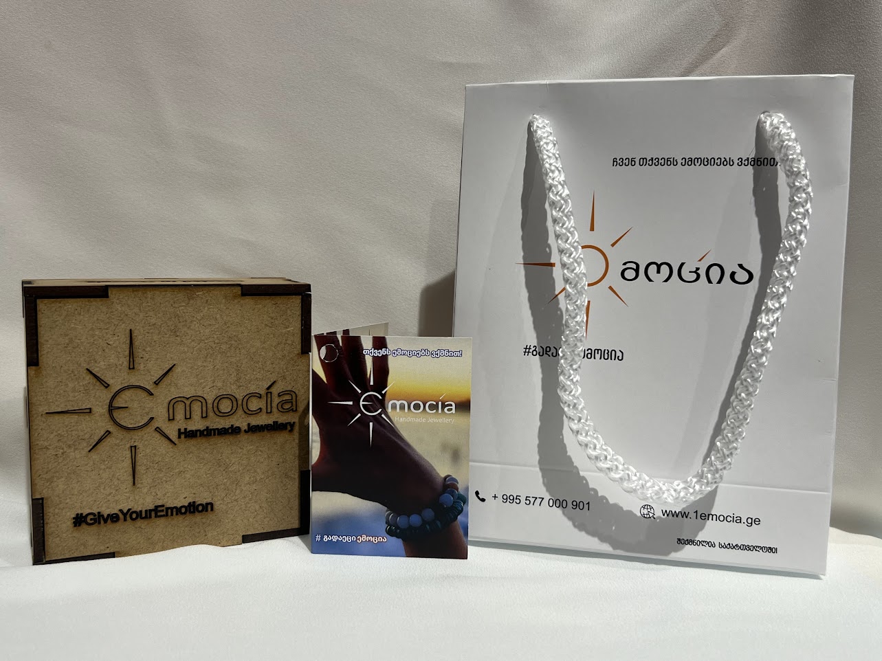 ***** ემოცია/Emocia Handmade Jewellery ხელნაკეთი სამკაულების ქართული ბრენდია, რომლის ასორტიმენტში შედის: ქალის სამკაული,  მამაკაცის სამაჯური, როგორიცაა:  ყელსაბამი, საყურე, ნატურალური ქვების სამაჯური და სხვა. ასევე ტილოს ჩანთები და მაისურები, რომელიც ჩვენი ბრენდის საავტორო და ექსკლუზიური ნამუშევრებია. ჩვენთან გამოიყენება უმაღლესი ხარისხის ბუნებრივი ქვები. ამიტომაა ემოციას ხელნაკეთი აქსესუარი, ექსკლუზიური სამკაული, რომელსაც სხვაგან ვერ ნახავთ. გვაქვს დიდი ასორტიმენტი. თბილისში არის საკურიერო მომსახურება, რეგიონებში კი გვემსახურება საქართველოს ფოსტა.  თუ გიყვართ მოგზაურობა, მეგობრებთან ერთად მხიარულება, დასვენება, ბუნება, ზღვა, თავგადასავლები, თუ თქვენთვის საინტერესოა ხელოვნება და ხელნაკეთი ნივთები, გსურთ შეარჩიოთ ორიგინალური და ლამაზი საჩუქარი, შეიქმნათ სადღესასწაულო, განწყობა, ისეთი მნიშვნელოვანი თარიღებისთვის, როგორიცაა: დაბადების დღე, შობა, ახალი წელი, საიდუმლო სანტა (სეკრეტ  სანტა, secret santa), ვალენტინობა, 8 მარტი, დედის დღე, სიყვარულის დღე და სხვა, დაგეხმარებით შეარჩიოთ სამაჯური, საყურე, ყელსაბამი, გასაღების საკიდი (ბრელოკი), საბავშვო სამაჯური, სასაჩუქრე ნაკრები და სხვა საჩუქარი. ასევე, აარჩიეთ და ატარეთ თქვენი ზოდიაქო . ჩვენს სამაჯურებში გამოყენებული ბუნებრივი ანუ ნატურალური ქვები და მინერალები: ემოცია არის საუკეთესო შეთავაზება და საინტერესო ქართული საჩუქარი , რომელსაც თავისი სასაჩუქრე შეფუთვა და პასპორტი აქვს.