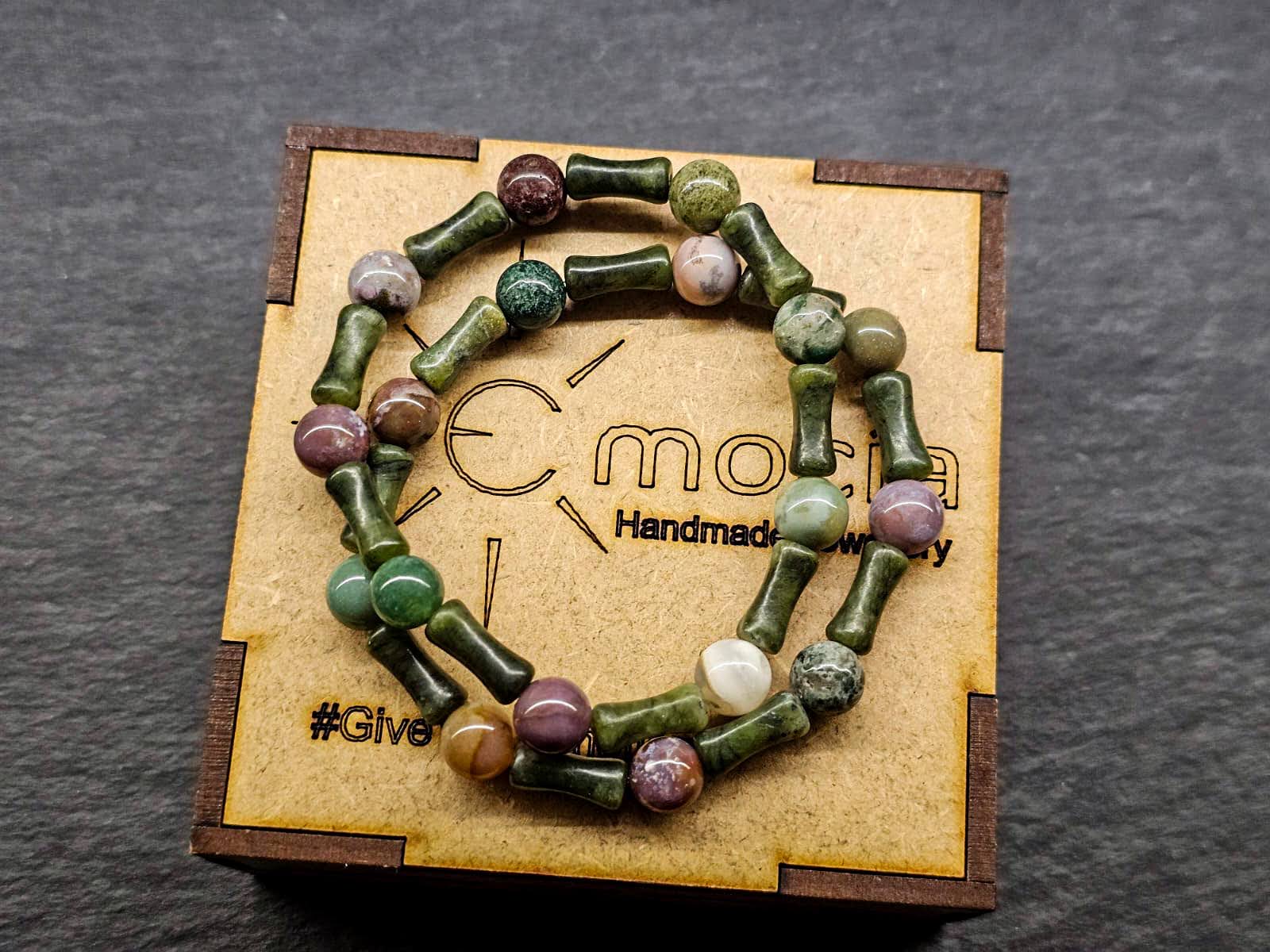 ***** ემოცია/Emocia Handmade Jewellery ხელნაკეთი სამკაულების ქართული ბრენდია, რომლის ასორტიმენტში შედის: ქალის სამკაული, მამაკაცის სამაჯური, როგორიცაა: ყელსაბამი, საყურე, ნატურალური ქვების სამაჯური და სხვა. ასევე ტილოს ჩანთები და მაისურები, რომელიც ჩვენი ბრენდის საავტორო და ექსკლუზიური ნამუშევრებია. ჩვენთან გამოიყენება უმაღლესი ხარისხის ბუნებრივი ქვები. ამიტომაა ემოციას ხელნაკეთი აქსესუარი, ექსკლუზიური სამკაული, რომელსაც სხვაგან ვერ ნახავთ. გვაქვს დიდი ასორტიმენტი. თბილისში არის საკურიერო მომსახურება, რეგიონებში კი გვემსახურება საქართველოს ფოსტა. თუ გიყვართ მოგზაურობა, მეგობრებთან ერთად მხიარულება, დასვენება, ბუნება, ზღვა, თავგადასავლები, თუ თქვენთვის საინტერესოა ხელოვნება და ხელნაკეთი ნივთები, გსურთ შეარჩიოთ ორიგინალური და ლამაზი საჩუქარი, შეიქმნათ სადღესასწაულო, განწყობა, ისეთი მნიშვნელოვანი თარიღებისთვის, როგორიცაა: დაბადების დღე, შობა, ახალი წელი, საიდუმლო სანტა (სეკრეტ სანტა, secret santa), ვალენტინობა, 8 მარტი, დედის დღე, სიყვარულის დღე და სხვა, დაგეხმარებით შეარჩიოთ სამაჯური, საყურე, ყელსაბამი, გასაღების საკიდი (ბრელოკი), საბავშვო სამაჯური, სასაჩუქრე ნაკრები და სხვა საჩუქარი. ასევე, აარჩიეთ და ატარეთ თქვენი ზოდიაქო . ჩვენს სამაჯურებში გამოყენებული ბუნებრივი ანუ ნატურალური ქვები და მინერალები: ემოცია არის საუკეთესო შეთავაზება და საინტერესო ქართული საჩუქარი , რომელსაც თავისი სასაჩუქრე შეფუთვა და პასპორტი აქვს.
